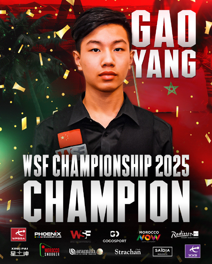 近日,中国前斯诺克职业球员高阳获得2025年“WSF(世界斯诺克联合会)锦标赛”冠军,同时他也获得了为期2年的职业资格,将参加接下来的斯诺克巡回赛。